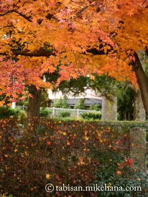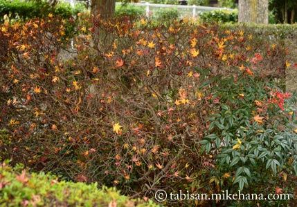 紅葉の落ち葉が垣のあちこちを彩り・・・