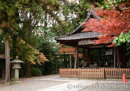 最期にキレイに彩づいた紅葉を見、駅へと・・・境内を出る時、案内板を見たら「木嶋坐天照御魂神社(蚕の社)」となっている・・・